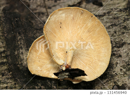 大きなケガワタケキノコの裏ヒダデザインアップ(アウトドアフィールド菌&キノコ類マクロ撮影)