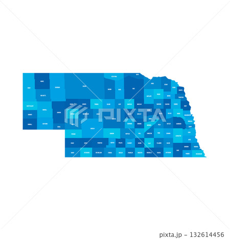 Nebraska, NE - detailed political map of US state. Administrative map divided into counties. Blue map with county name labels. Vector illustration