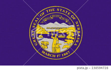 Flag of American state Nebraska on fabric surface. Nebraska state flag