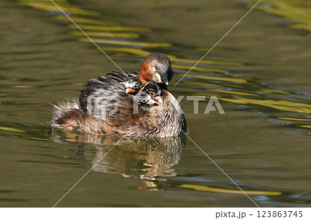 子供を背負ったカイツブリ
