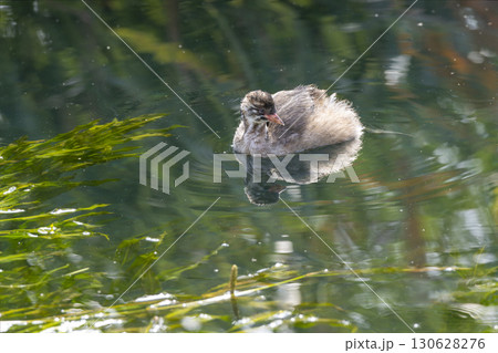 カイツブリのひな 水面を泳ぐカイツブリのひな鳥