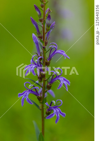 サワギキョウ 夏 山野草 紫色の花 クローズアップ