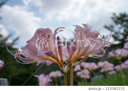 夏の陽射しを浴びるピンクの夏水仙 花(8月)ナツズイセン(夏水仙)58H4.3
