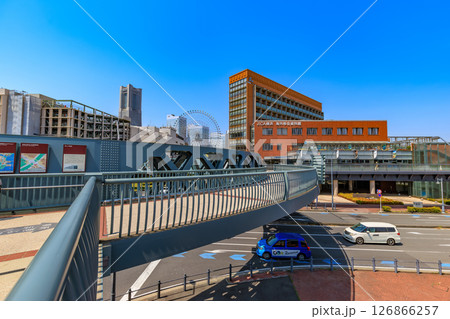 都市風景 横浜 ベイエリアの商業施設(オープンモール)のエントランス