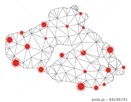 Polygonal 2D Mesh Vector Lesbos Island Map with Coronavirus