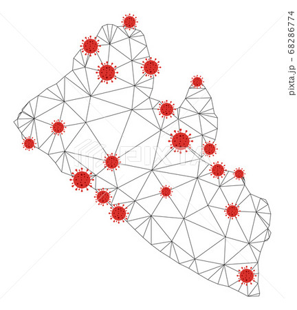 Polygonal Carcass Mesh Vector Liberia Map with Coronavirus