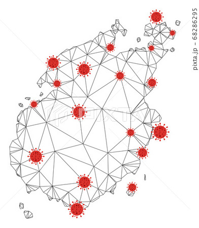 Polygonal Carcass Mesh Vector Faroe Islands Map with Coronavirus