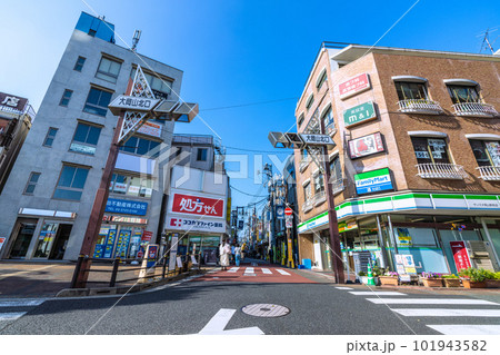 日本の東京都市景観 夏日。大岡山駅前の大岡山北口商店街などを望む