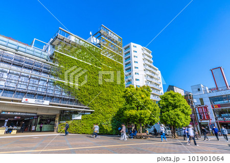 日本の東京都市景観 6月。田園調布駅の復元駅舎などを望む=8日