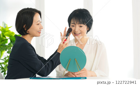 メイクのアドバイスを受けるミドル女性 ビューティーアドバイザー