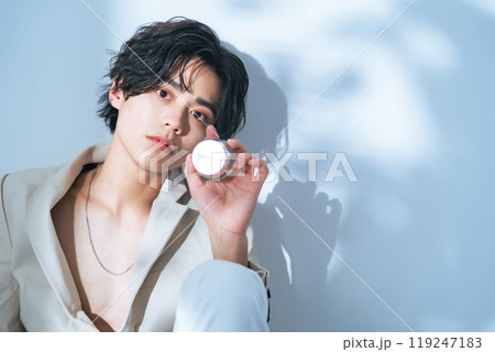 コスメを持つ男性 ジェンダーレスメイク メンズコスメ スキンケア