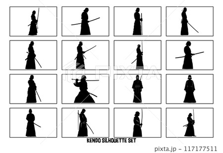 Kendo Silhouette Set - Traditional Japanese Martial Arts Illustration and Clipart