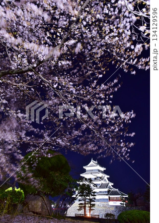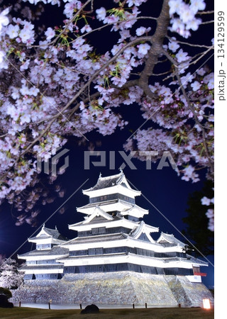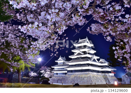 夜桜に映える国宝 松本城