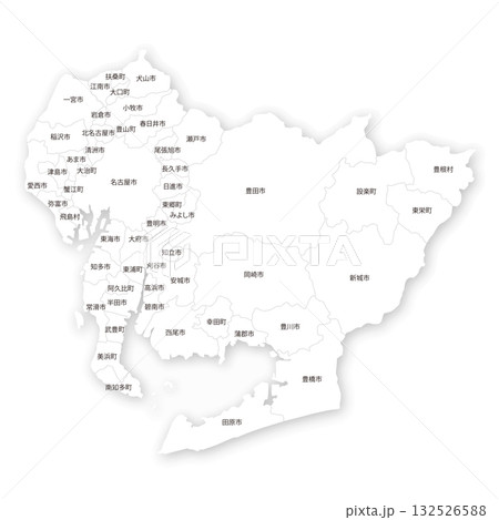 日本の愛知県の地図(市町村や地域区分を線で描いている地図)