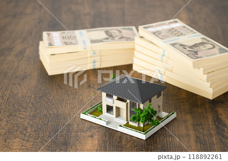 家のミニチュアと札束(新紙幣)