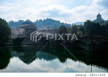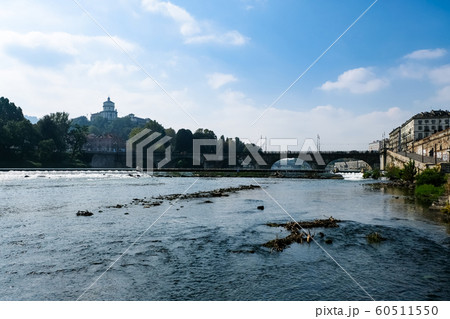 イタリア トリノのポー川とサンタ・マリア・アル・モンテ・デイ・カプチーニ教会