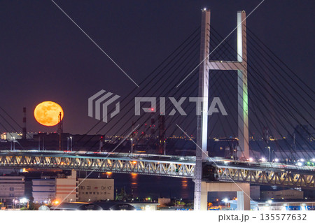 《神奈川県》横浜ベイブリッジとスーパームーン