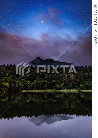 星降る夜の利尻島姫沼と利尻富士