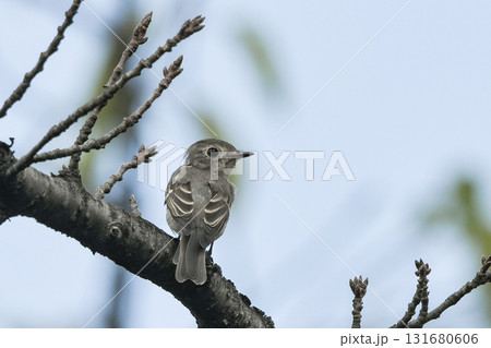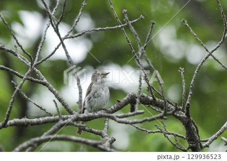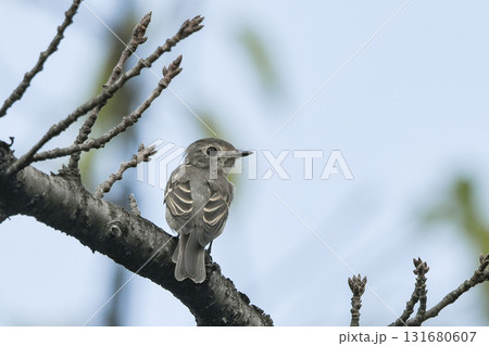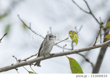 野尻高原大学村 別荘地の枝にとまるコサメビタキ