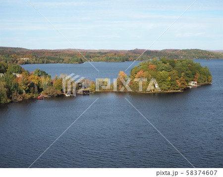 秋色に輝く湖畔の別荘地 - カナダ・オンタリオ州ハンツビル