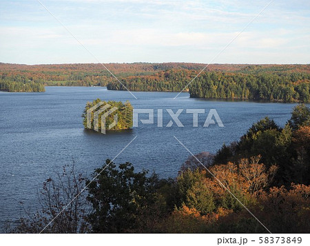 紅葉と湖と小島 - HuntsvilleのLions Lookoutからの眺め