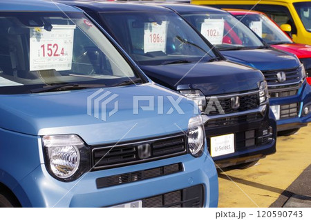 中古車イメージ 販売店に並ぶ車 ホンダの軽自動車