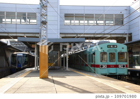 西鉄福岡(天神)駅に停車中の西鉄9000形