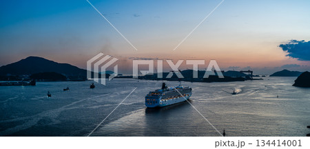長崎港客船入港(Norwegian Spirit)対岸から パノラマ【長崎市】