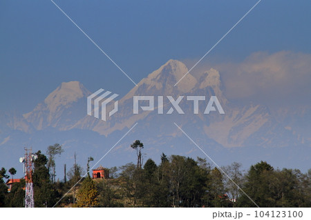 南アジアのネパール カトマンドゥ郊外の村ナガルコットのビュータワー展望台からヒマラヤ山脈の景色