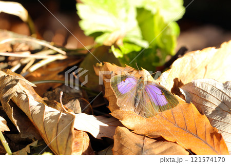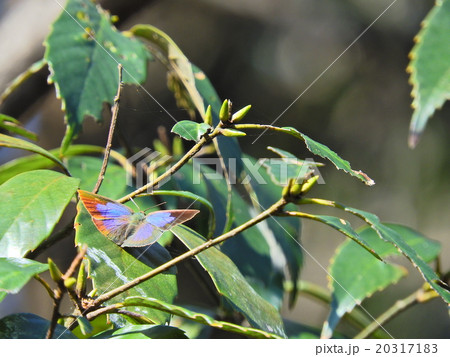 生き物 日向ぼっこをする越冬中のムラサキシジミ