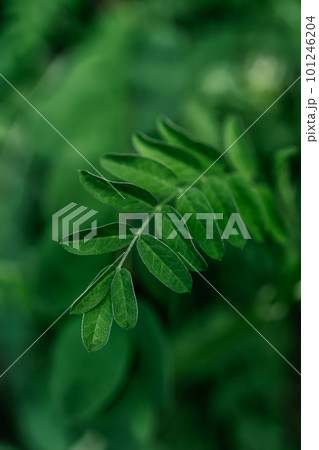 Green leaves of a vicia sativain summer in the meadow. Nature background pattern texture for design.