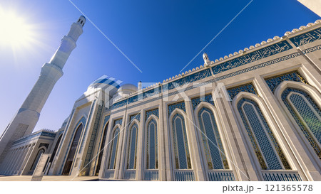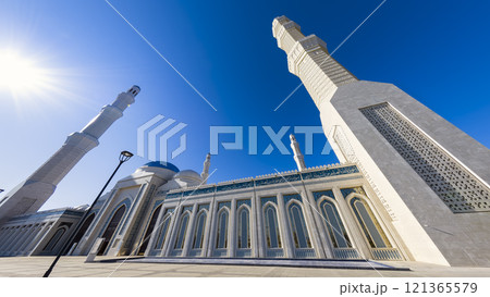 カザフスタン・アスタナの青空に映えるグランドモスク / Astana, Kazakhstan