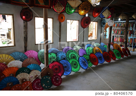インレー湖の伝統的な傘(ニャウンシェ、ミャンマー)