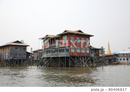インレー湖の水上家屋(ニャウンシェ、ミャンマー)