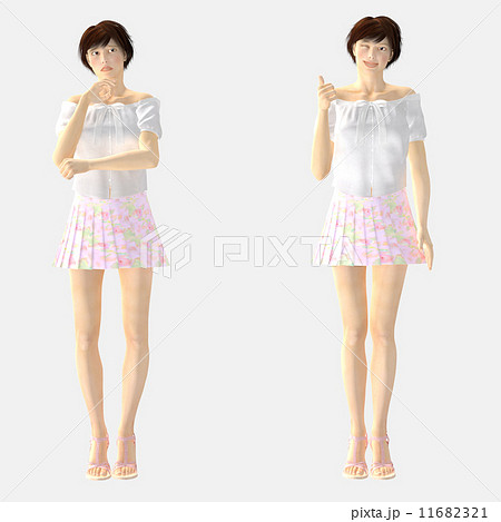 O脚の女性 比較 perming3DCGイラスト素材