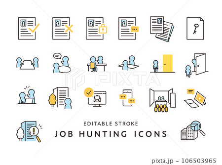 就職・転職活動にまつわるアイコンセット2(フラット)