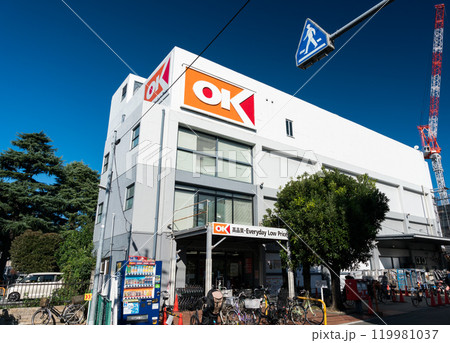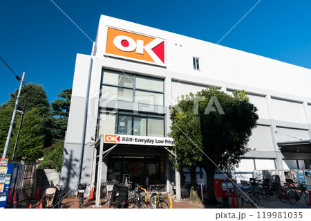 オーケー狛江店の外観 秋晴れの青空 東京都狛江市和泉本町