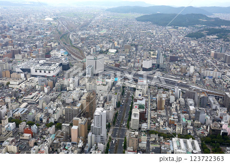 岡山駅東口を空撮