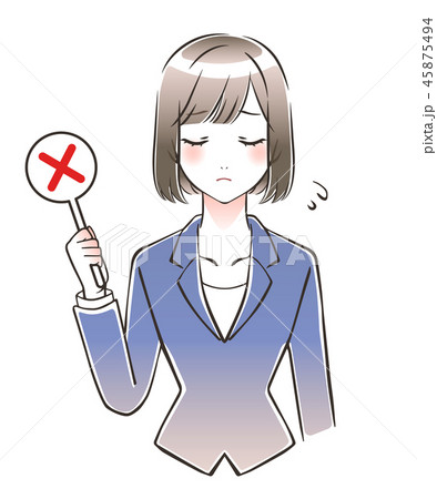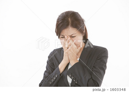 かわいいポニーテール スーツのビジネスウーマン 上半身 落ち込む
