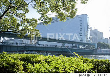 天満橋から大川の風景 夏 新緑の季節【大阪市 天満】