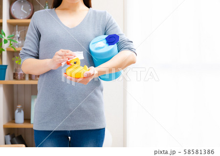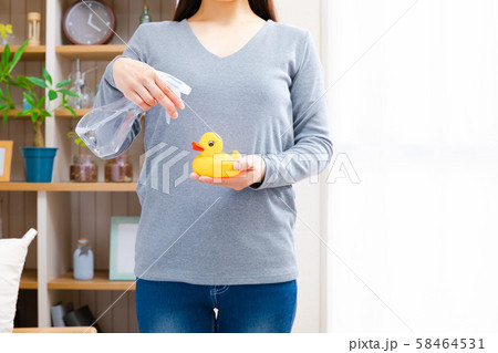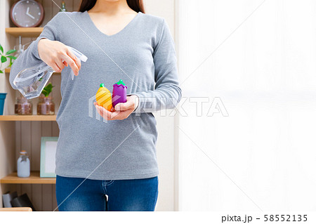 スプレーする女性 子供のおもちゃ ノンアルコール アルコール 除菌 消毒 アルカリ電解水