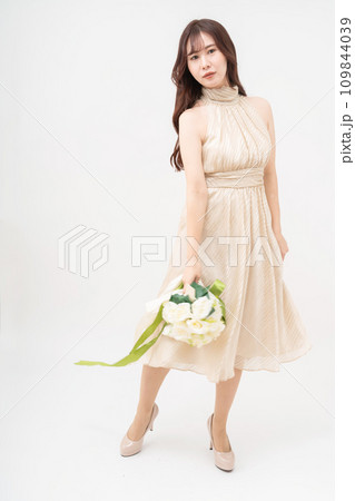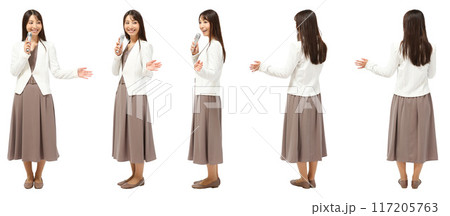 マイクを持つ女性司会者の全身人物切り抜き素材
