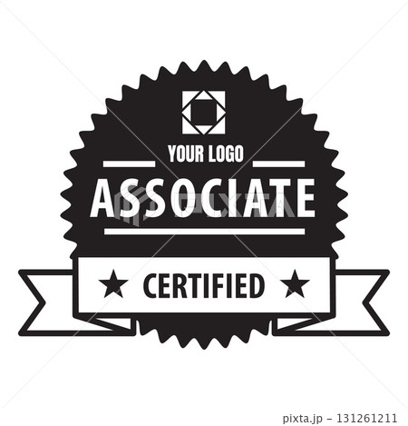 Round black curved frame with white ribbon with inscription, certified, place for logo.