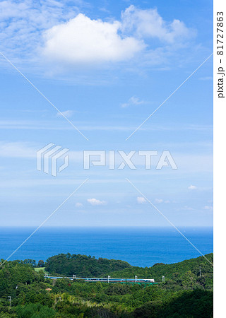 伊豆稲取の大俯瞰 伊豆海岸線を行く、特急スーパービュー踊り子