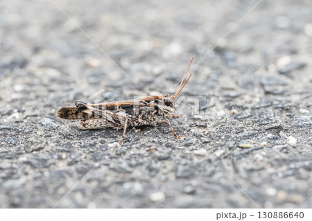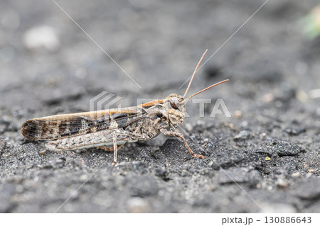 クルマバッタモドキ 車飛蝗擬 Oedaleus infernalis メス 昆虫 迷彩 地面 土