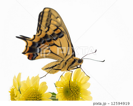 アザミにとまるキアゲハ 白背景