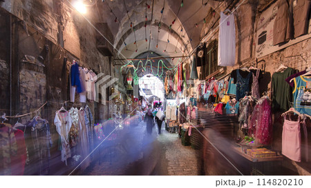 The colorful souk in the old city of Jerusalem Israel night timelapse