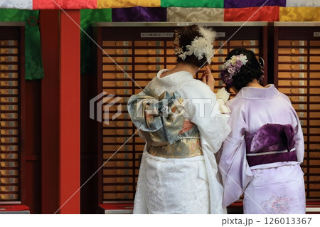 おみくじを引く和服の観光客 レンタル着物 レンタル振袖