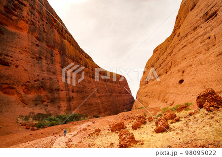 V字の谷間が壮大なマウントオルガ(カタ・ジュタ)のウォルパ渓谷