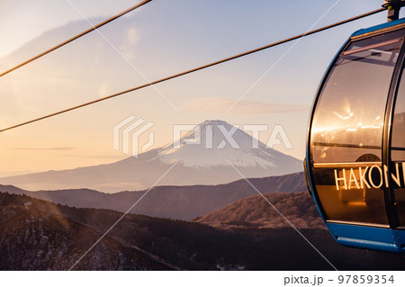 箱根 ロープウェイと富士山と夕暮れ